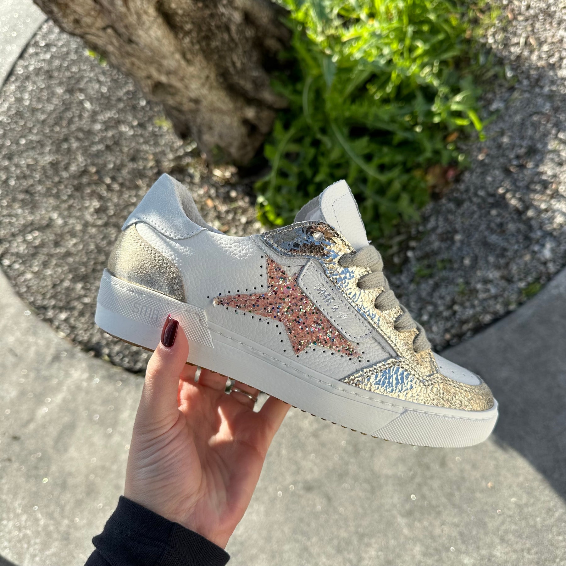 Décorations : Étoile iconique SMR, empiècements contrastés et finitions brillantes pour une touche fashion assumée.