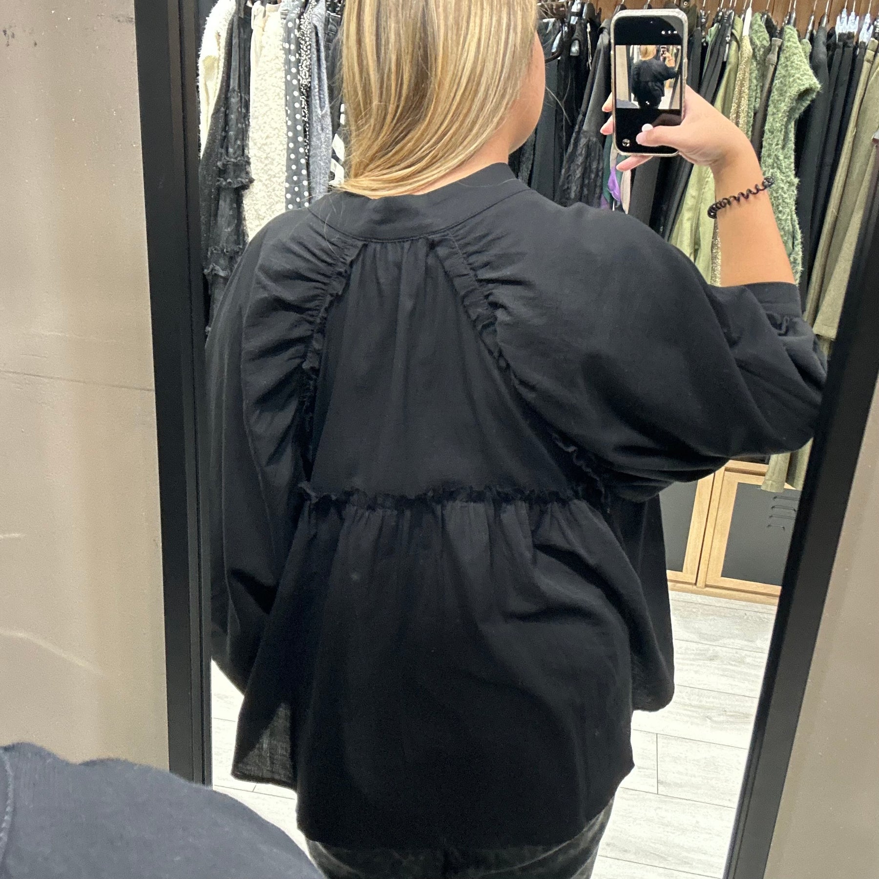 Blouse oversize fluide noire ou marron à manches bouffantes et fronces dans le dos 🤎🖤