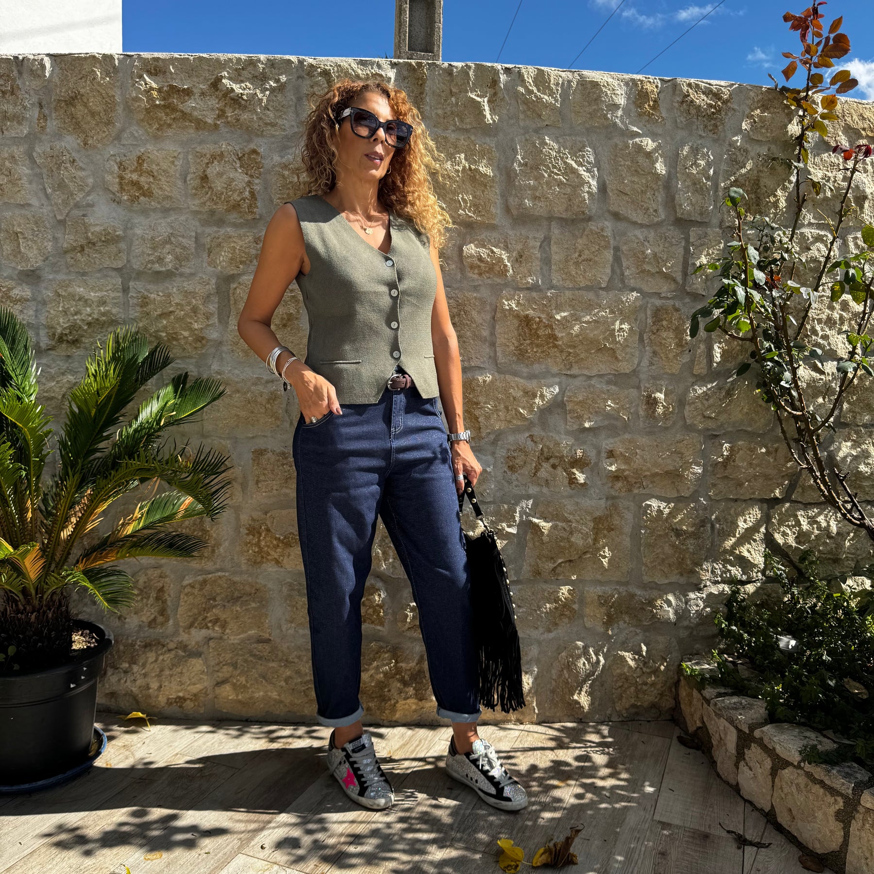 Gilet sans manche, avec 4 boutons nacrés.