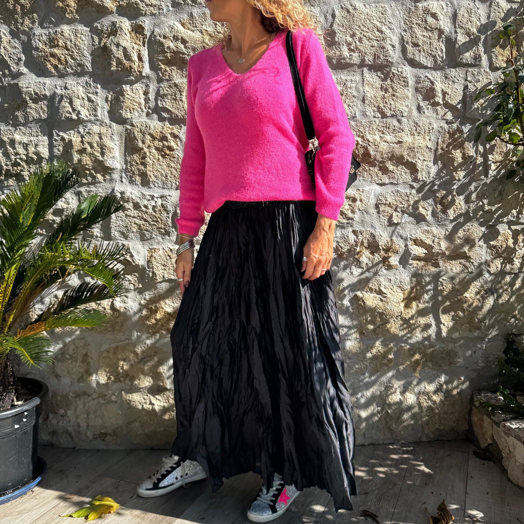 - Détails : tissu satiné à l'aspect brillant, travaillé avec un effet froissé permanent.