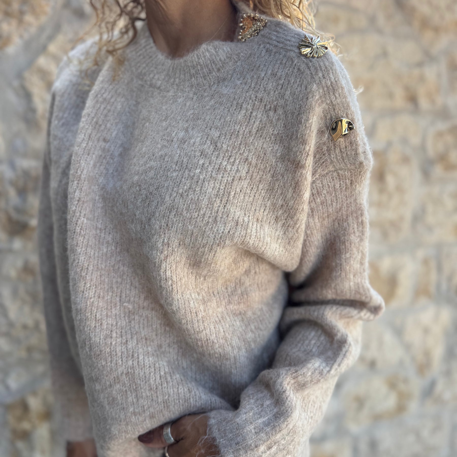 Pull Bijoux beige chiné