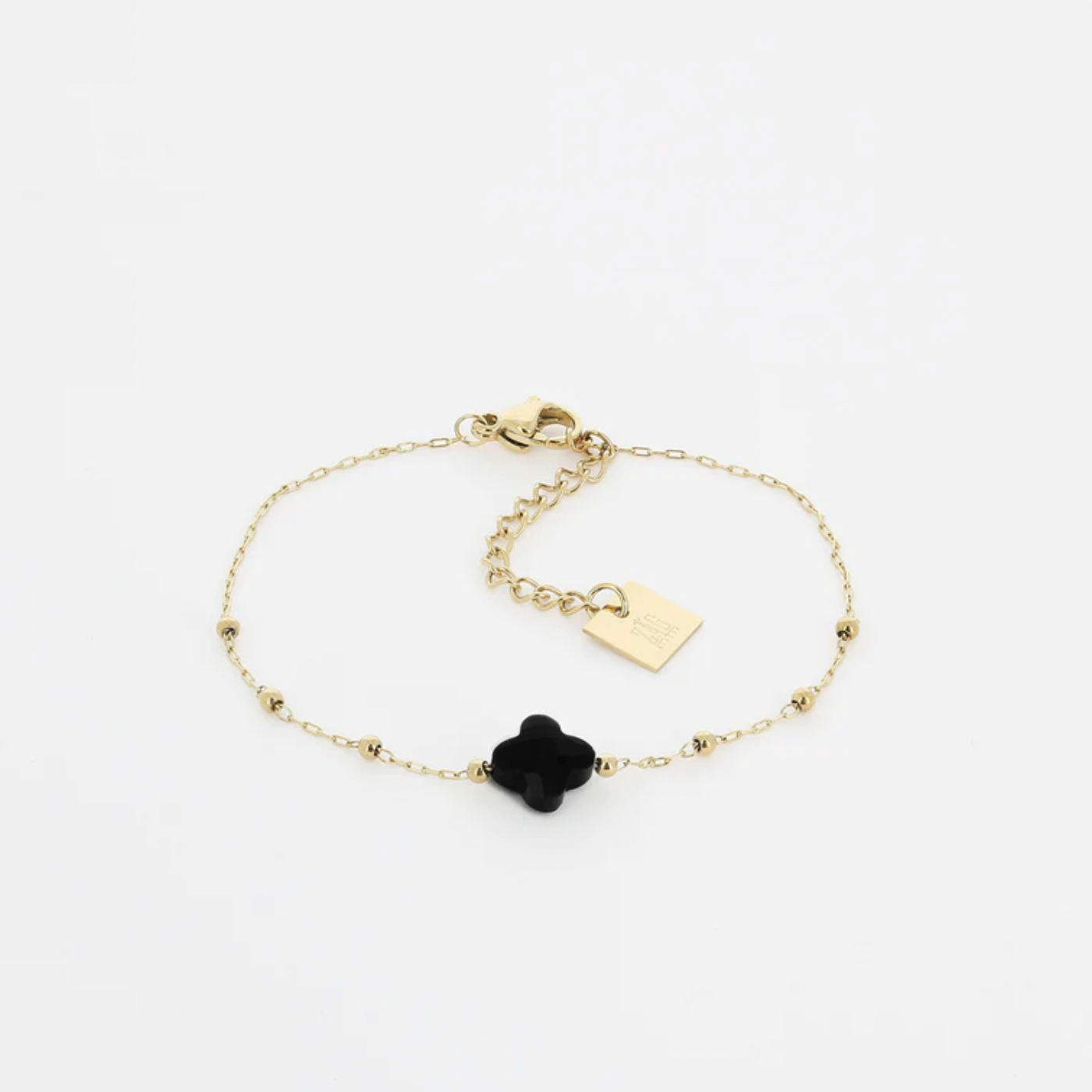 Bracelet chaîne "chapelet" en acier uni ou doré à l'or fin par ionisation sur lequel est attachée pierre naturelle en forme de petit trèfle.
