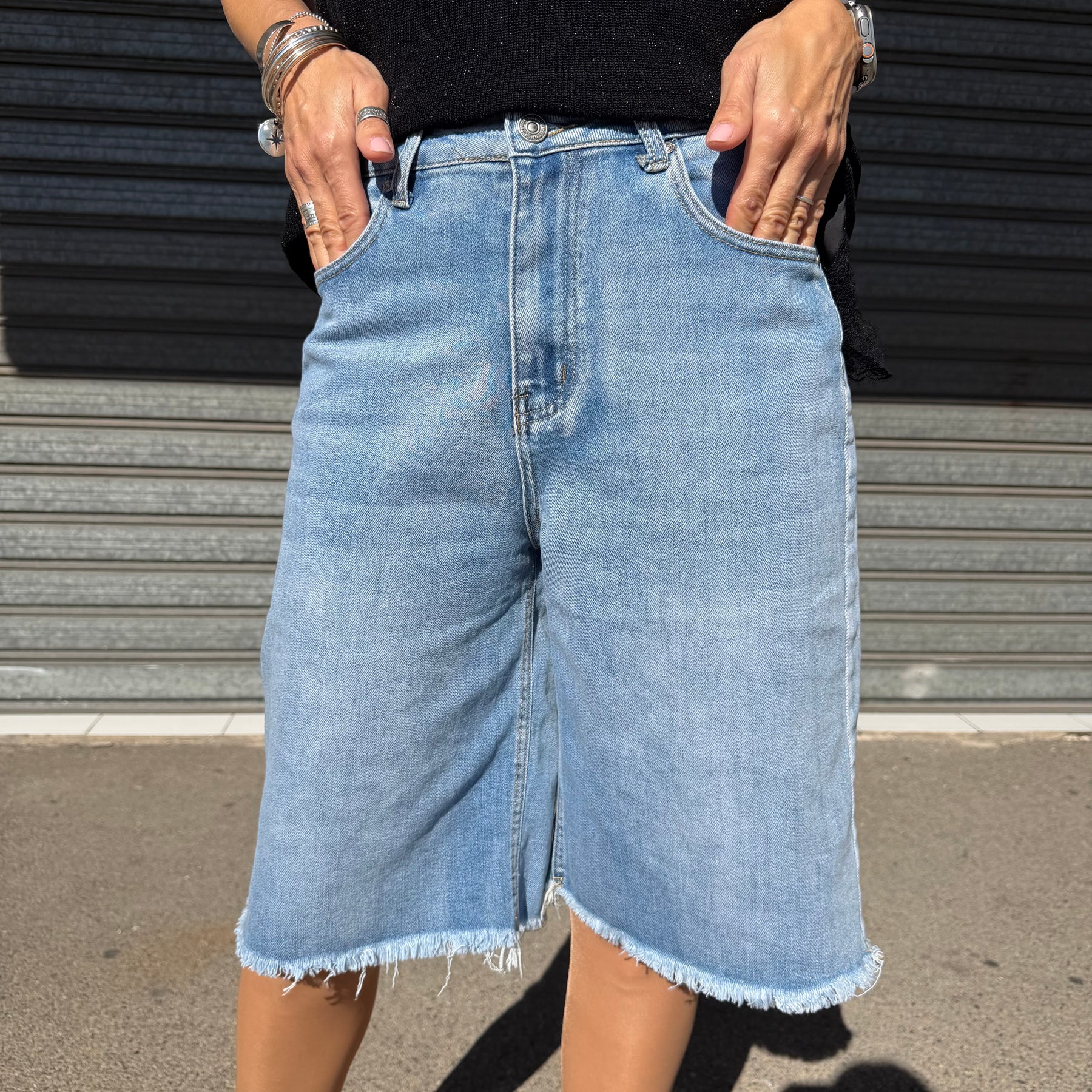 Indispensable du vestiaire estival et de la mi-saison, ce bermuda en jean adopte une coupe longue et décontractée.