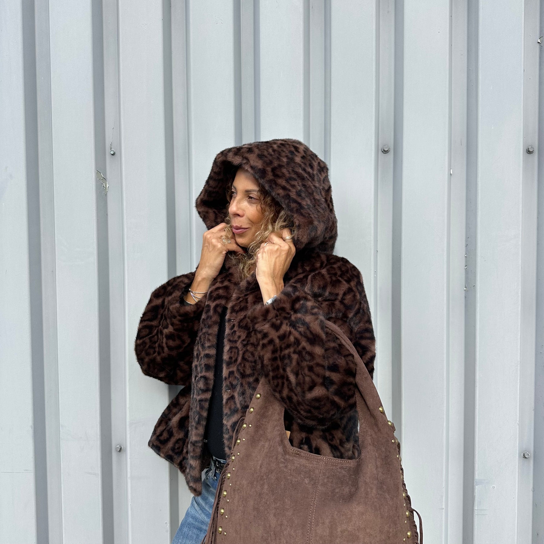 Veste Lyna à capuche en fausse fourrure léopard